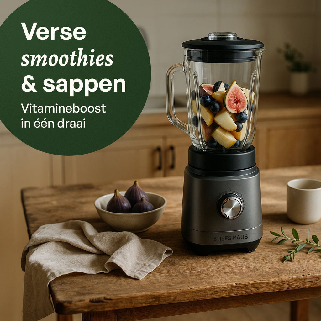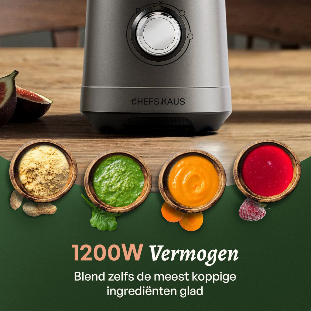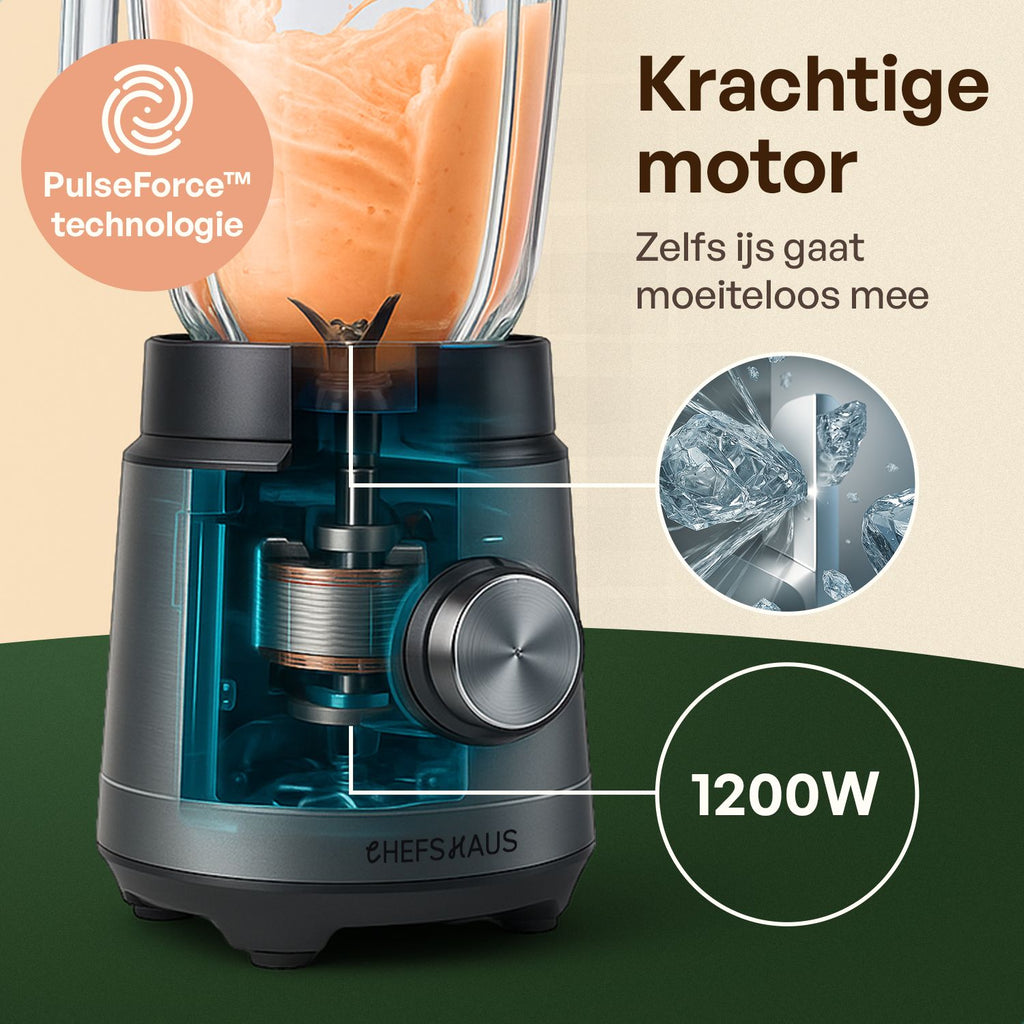 Der CHEFSHAUS Blendmate Bietet konstante Leistung und Zuverlässigkeit. Der kraftvolle Motor verarbeitet mühelos Nüsse, Haferflocken, gefrorene Früchte und Eiswürfel. Ideal für alle, die Wert auf einen gesunden Lebensstil, Komfort und Effizienz legen.