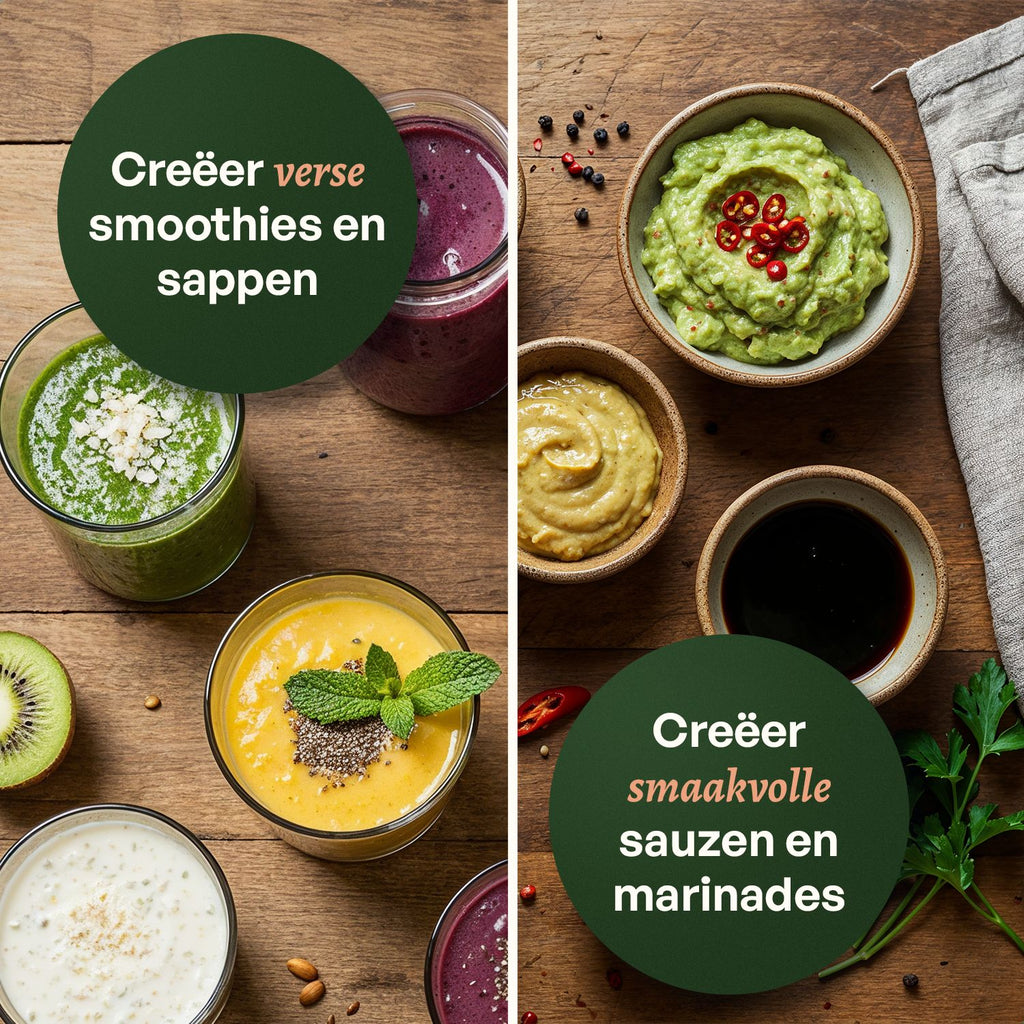 Die Geschwindigkeit lässt sich einfach anpassen und die Leistung nutzen. Pulsfunktion Für maximale Kontrolle über die Konsistenz. Von cremigen Smoothies bis hin zu fein zerstoßenem Eis: Sie bestimmen das Ergebnis. -