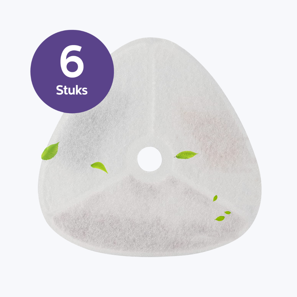 Navulling set met 6 reinigingsfilters voor de Petalo 2.5 liter drinkfontein. De filters bieden een 3-laags filtersysteem bestaande uit stevig polypropyleen, kokossnippers en geactiveerd koolstof. Middels het filter worden haren, viezigheid, smaakjes en geurtjes uit het water gefilterd. Zo heeft je huisdier altijd het meest verse en gezonde water!